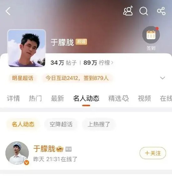 据了解,于朦胧昨日(9.10)晚21:31微博在线,上一次动态则停留在9月3日。