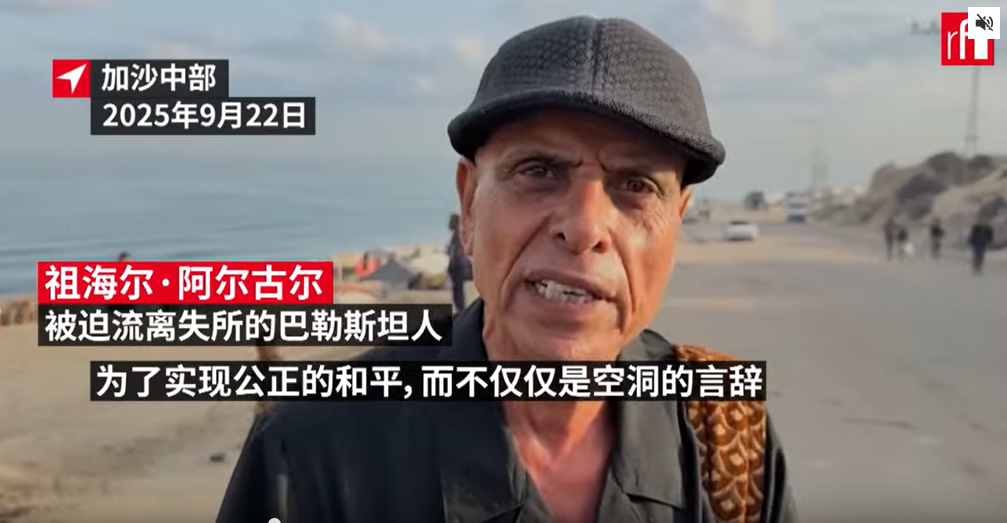在加沙,流离失所的巴勒斯坦人祖海尔·阿尔古尔9月22日表示,他希望能够实现“安全与稳定”,并结束在加沙的战争。