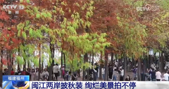 入秋以来,福建福州的栾树、红杉等植物陆续披上金红“秋装”,不少市民和游客来到闽江两岸,感受这份属于秋季的浪漫。