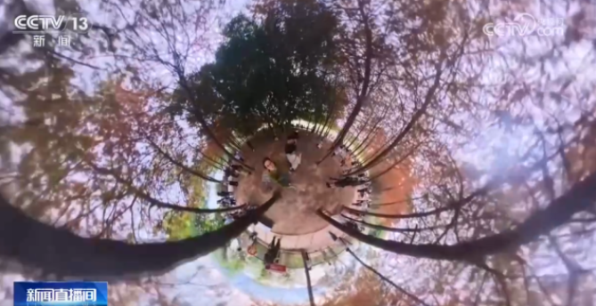 现在记者手上拿的就是一个360度的全景相机,它可以同时拍摄到周围所有角度的画面,呈现出一个像地球仪一样的效果,是不是很有意思呢?现在很多的摄影爱好者也会用它来拍摄秋日旅拍,把江水、红叶、蓝天尽收眼底,既好玩又出片。