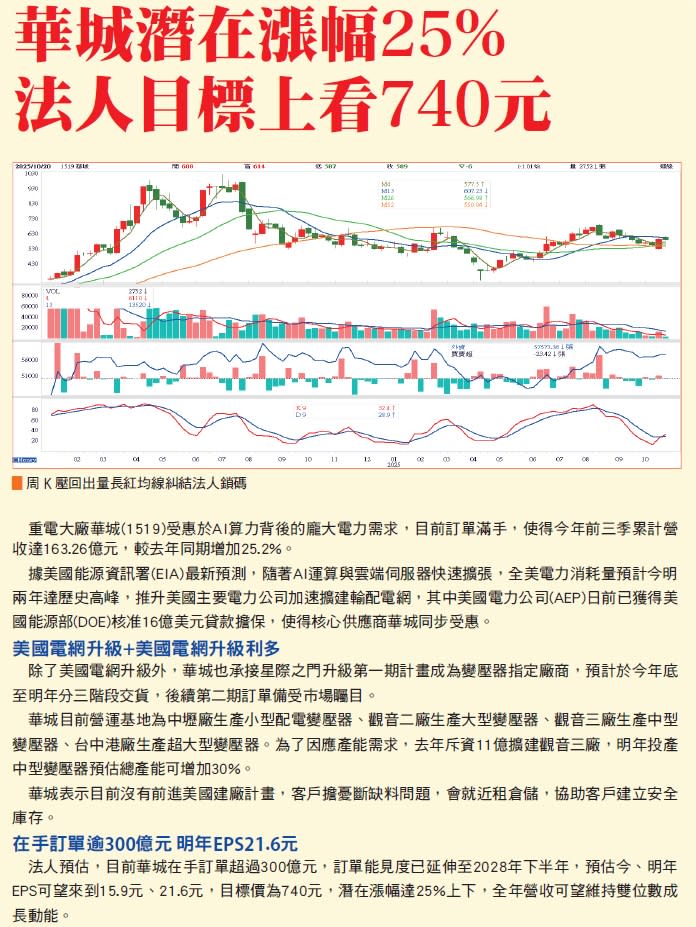 近年來隨者AI需求的爆發帶動龐大的電力需求,華城不僅受惠於美國電網升級潮外,更是承接星際之門第一期計畫的變壓器指定廠商,預計於今年底至明年分三階段交貨,後續第二期訂單備受市場矚目。