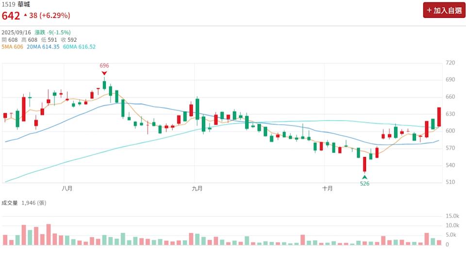 ▲圖片來源:CMoney 1519 華城 K線圖
